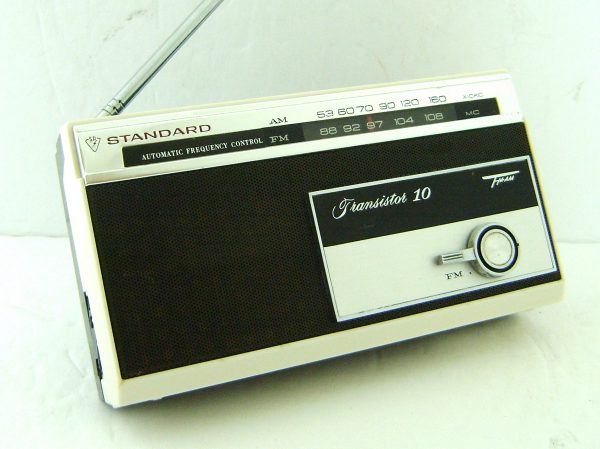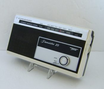 Offered here is this Standard 10 transistor AM/FM radio in excellent condition. Made in the mid 60’s, this high-quality transistor is a great performer. It is compact at only 6 1/2″ wide. This operates on 4 AA batteries and is in original condition with no repairs made or needed.