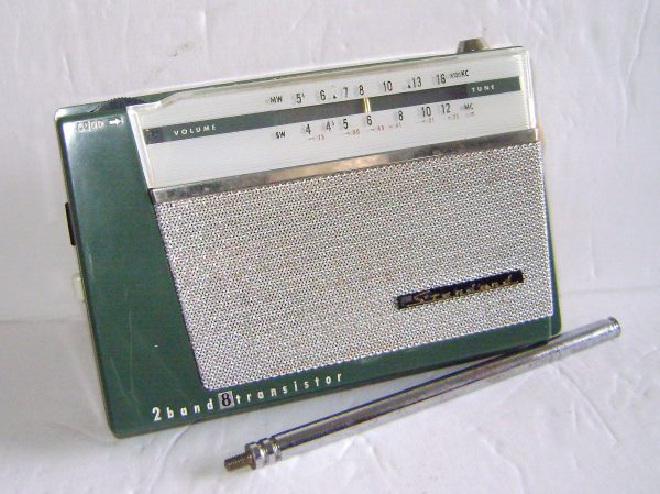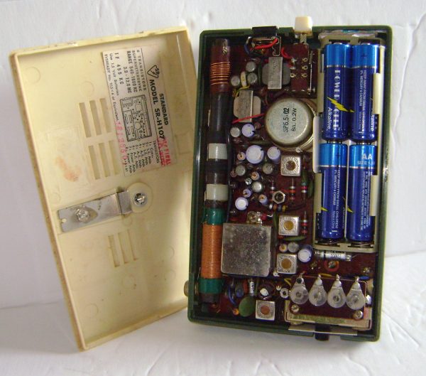 Offered here is this clean and seldom seen early AM/SW radio from Standard in Japan. This SR-107 is an eight-transistor radio which operates well on 4 AA batteries. This radio is in nice cosmetic condition with no chips or cracks and a large reverse painted face.