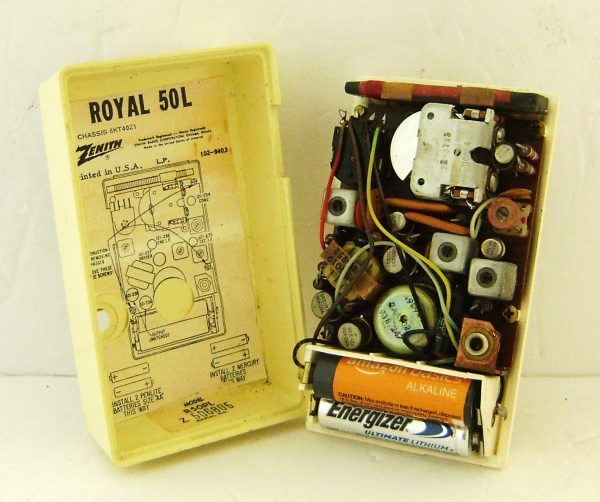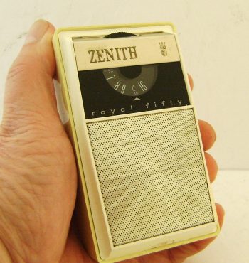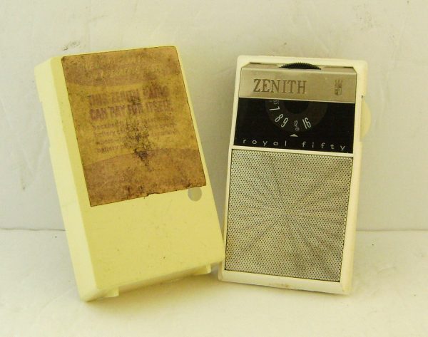 Offered here is a nice Zenith Royal 50PL shirt pocket radio in the hard to find yellow cabinet with gold grill. This AM receiver is a great performer and runs on 2 AA batteries. The sound is strong and clear from this six transistor receiver as it picks up all my local and some distant stations.