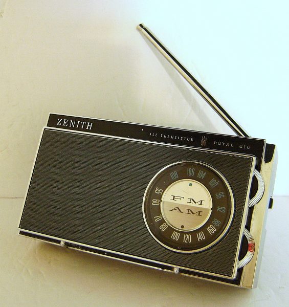 Here is this nice 1966 AM/FM pocket radio from Zenith. The Royal 810 is Zeniths initial pocket radio with FM. It has a large tuning dial for easy station selection, and it produces a great sound coming from four AA batteries. This radio looks to be in excellent condition and has been tested to assure it is working correctly on both bands. It is pulling all my known stations with strong, clear sound on AM and FM. You will be impressed! One of the best I have seen.