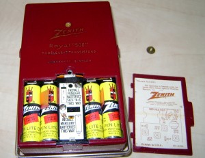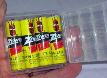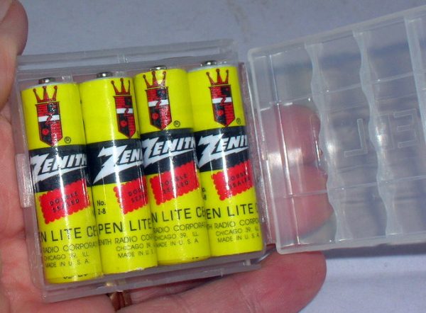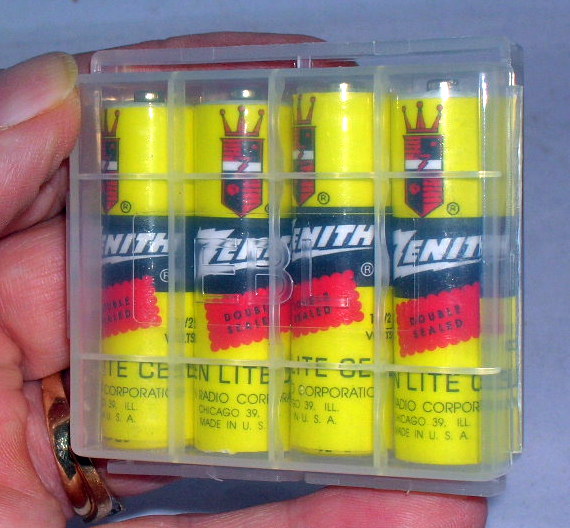 Offered here is a set of four (4) batteries designed to simulate the original Z8 penlight cells made by Zenith in the early 60’s. These batteries are actually modern alkaline AA cells that have been wrapped in a sleeve which replicates the early batteries.  They make a great display, plus they have a full charge so they can be used until they are depleted.  They will arrive to you in a nice plastic holder.  Below is a picture that shows the impact of adding these to your boxed set.  Cool.